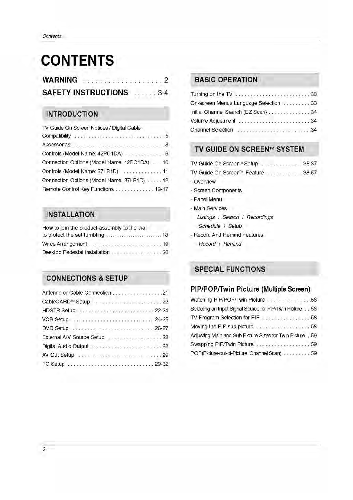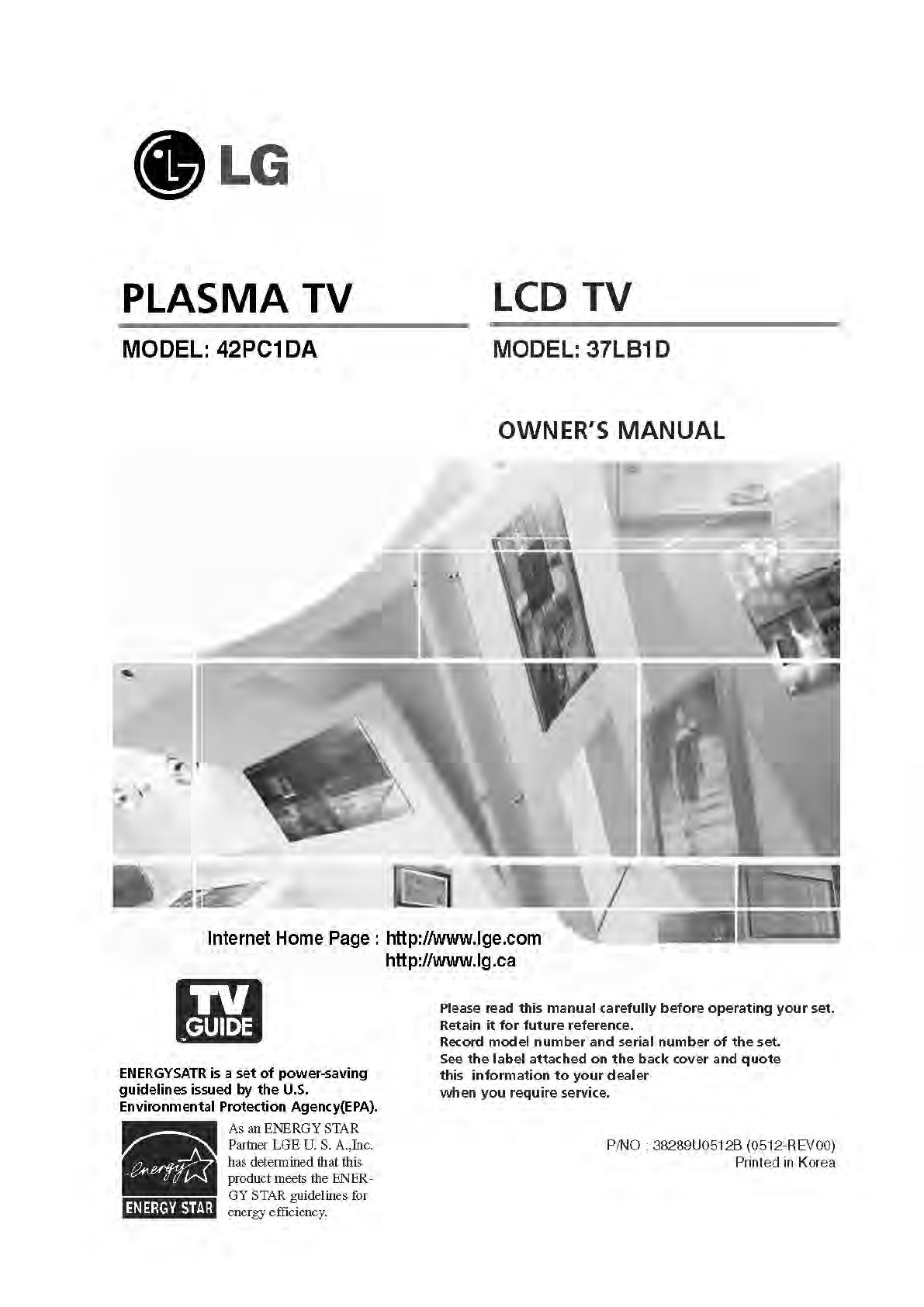 LG Electronics USA 42PC1DAUB Plasma Display User Manual 1