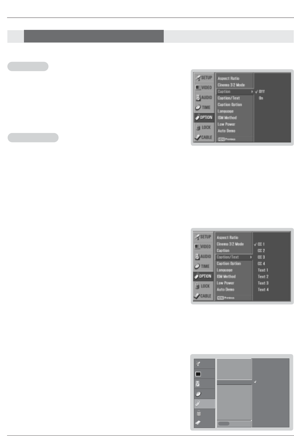• Use the D/E/F/Gbuttons to move through the options. Use