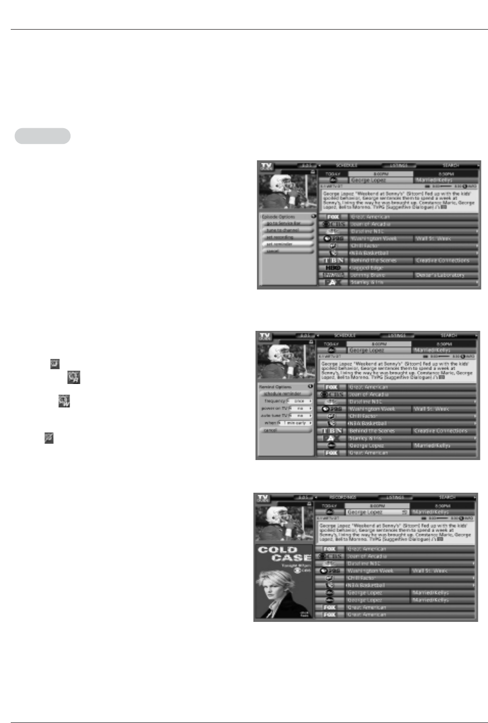 • Highlight Set Reminder, and press ENTER to display the Remind