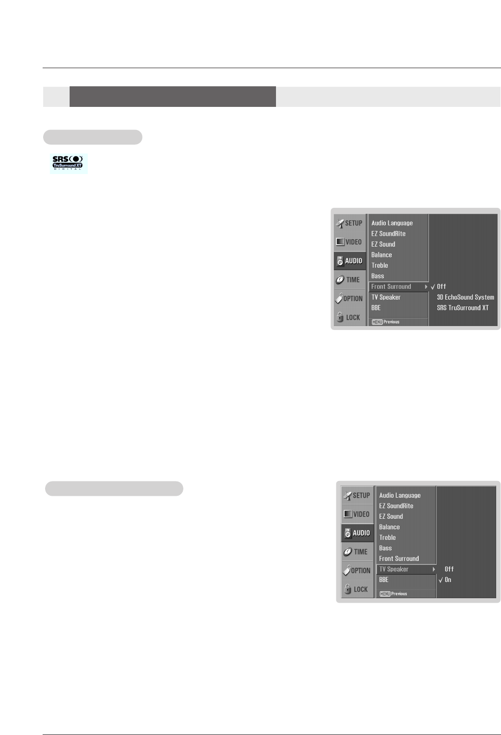 System or SRS (Sound Retrieval System) TruSurround XT..