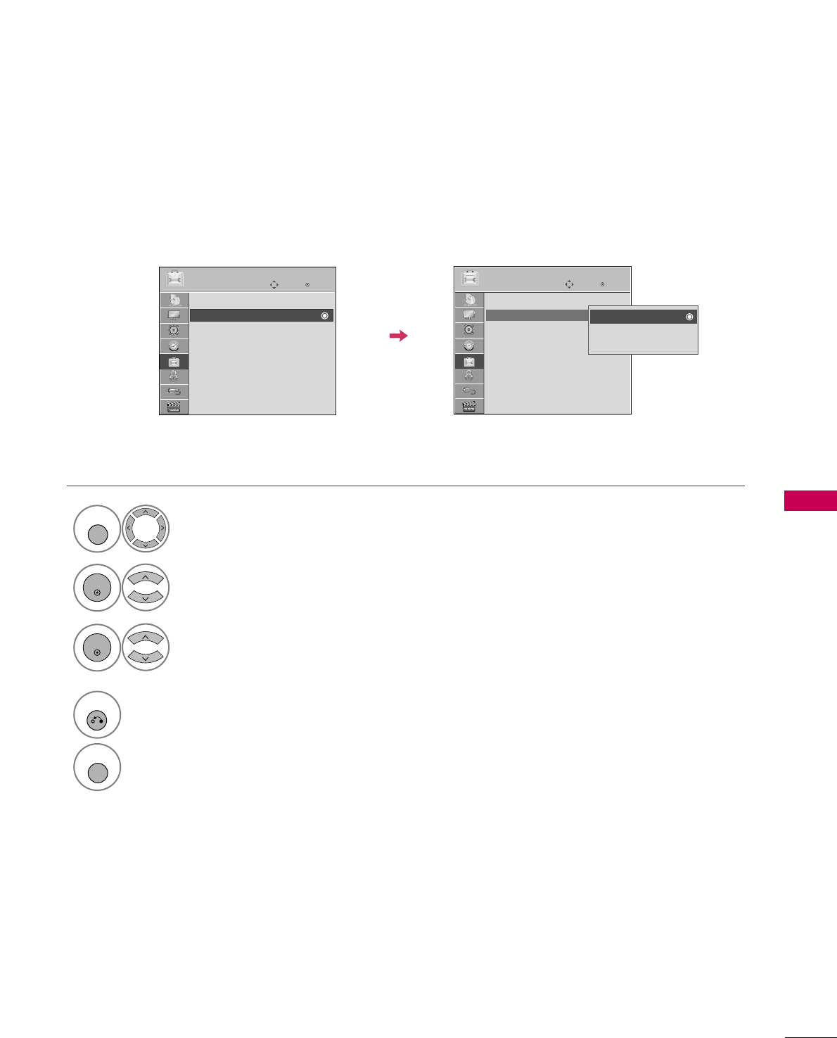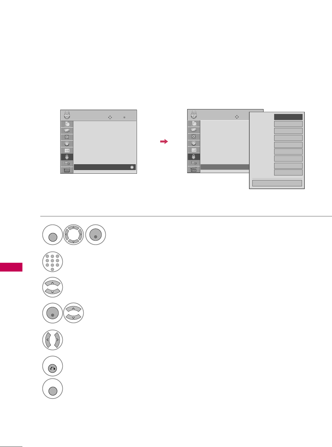 VHF 2-13, UHF 14-69, CATV 1-135, DTV 2-69, CADTV 1-135