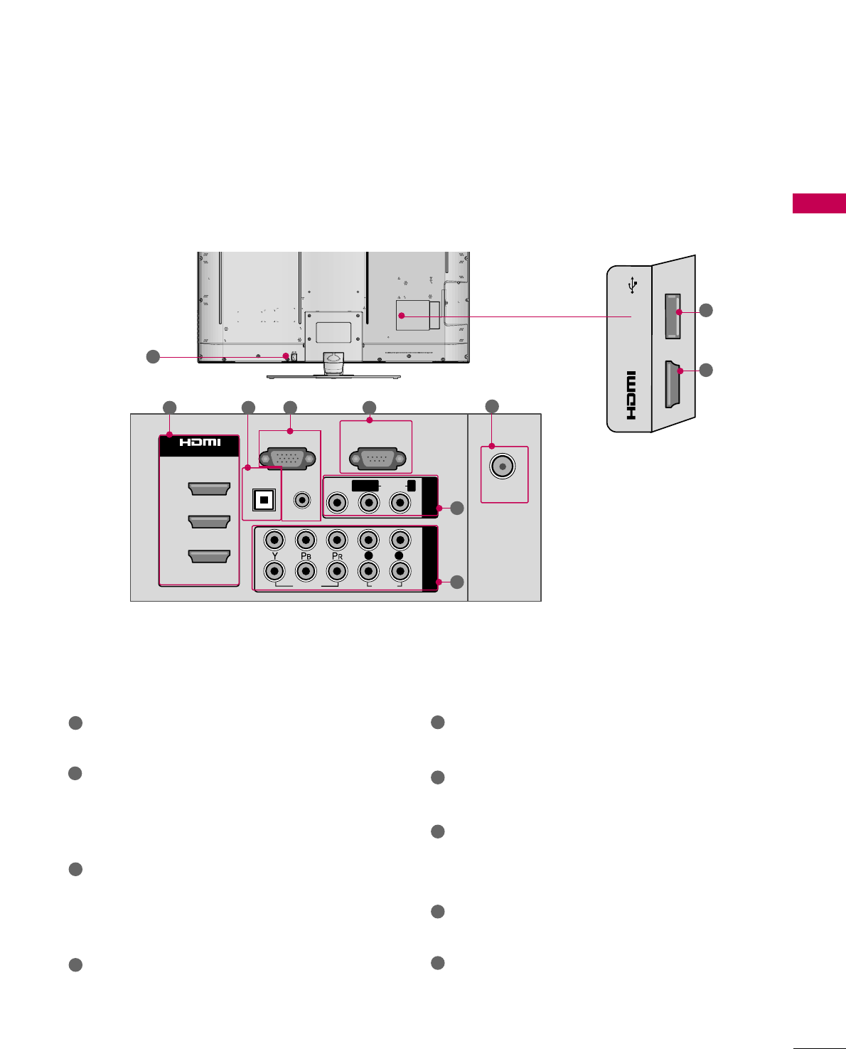 on the back and one side of the TV.