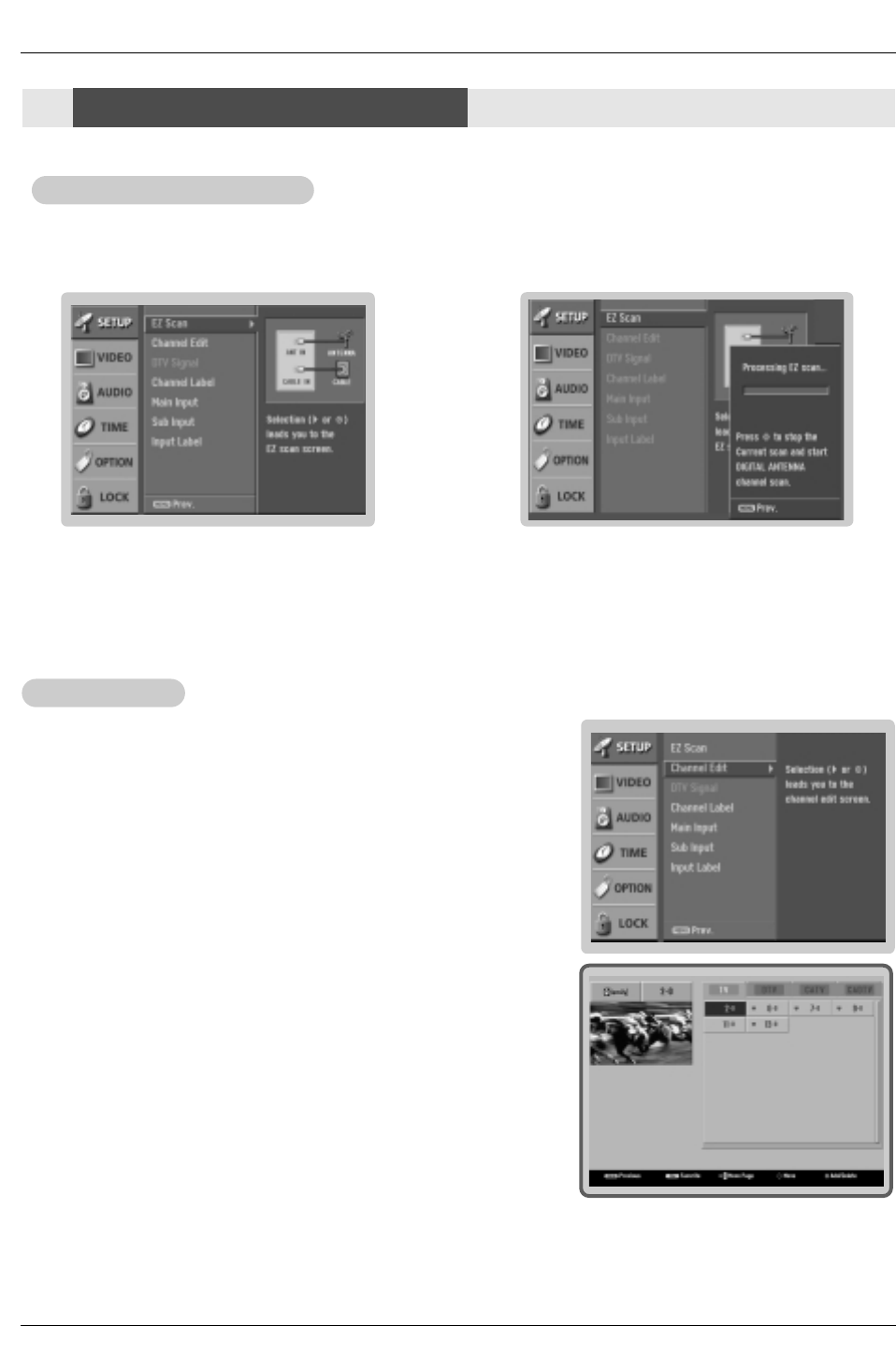 VHF 2 ~ 13, UHF 14 ~ 69, CATV 1 ~ 135, CADTV 1 ~ 135. DTV 2 ~ 69