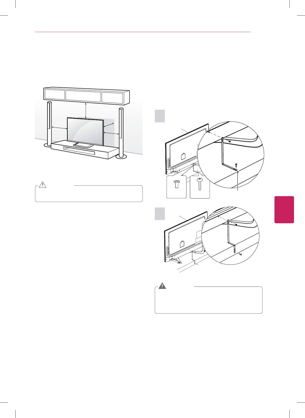 bookcases, shelves, desks, speakers, chests or carts may fall over and