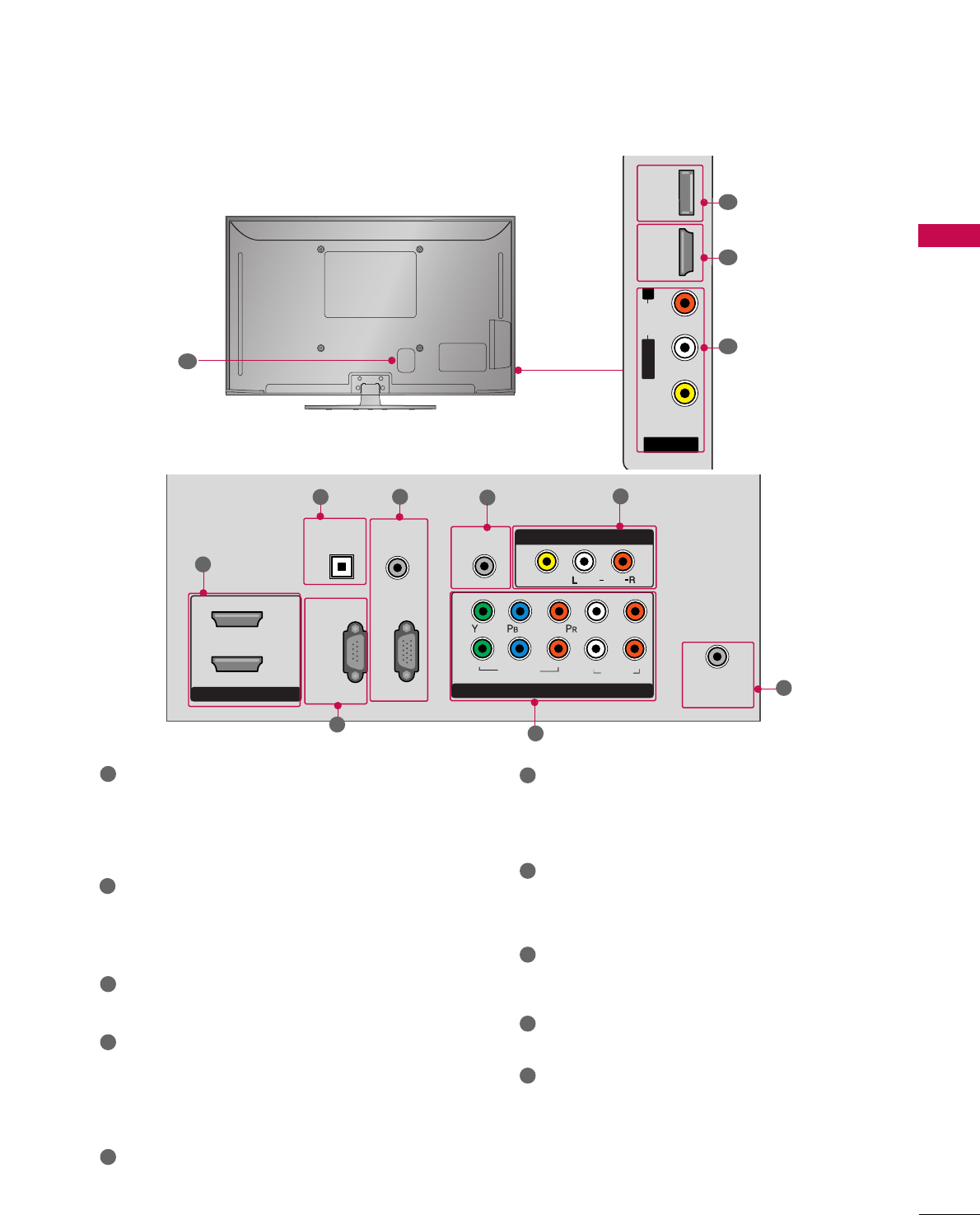 on the back and one side of the TV.