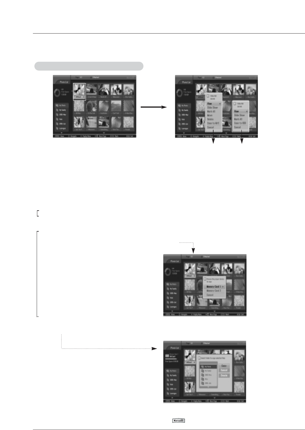 1. Insert the Memory Card to Memory card slots of TV side panel.