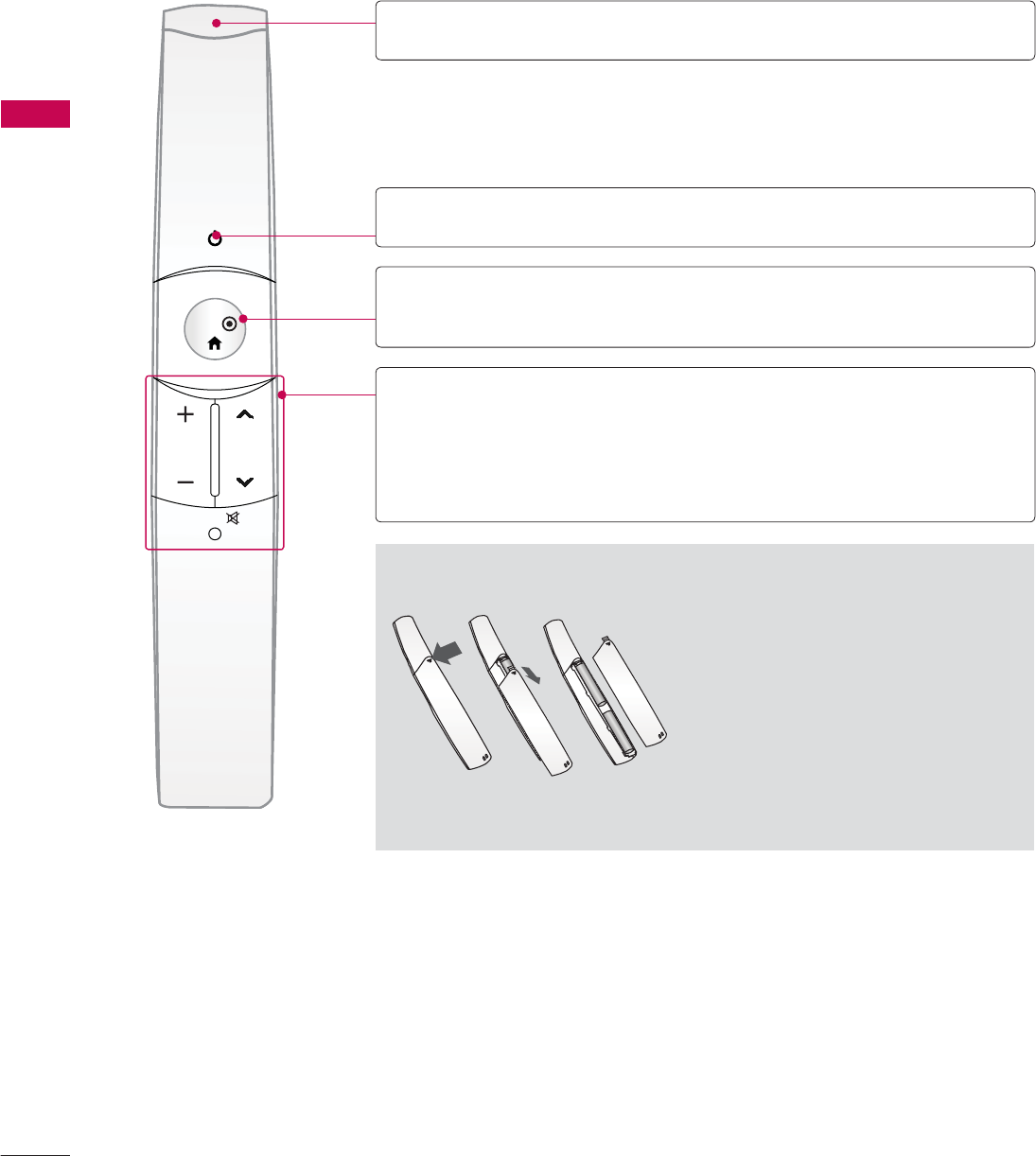 Press this button if there is no pointer on your TV screen. The pointer will then appear on the