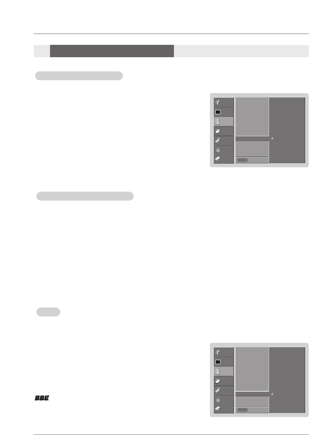 2. Press the Gbutton and then use D / Ebutton to select BBE.