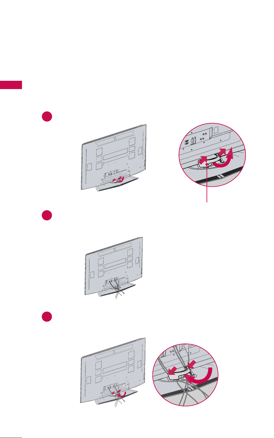 ■Insert the eye-bolts (or TV brackets and bolts) to tighten the product to the wall as shown in the picture.