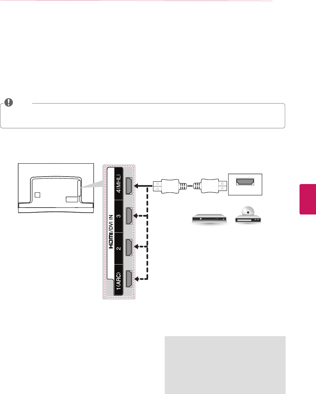 USB storage devices, PC, gaming devices, and other external devices. For more information on external device’s connection, refer to