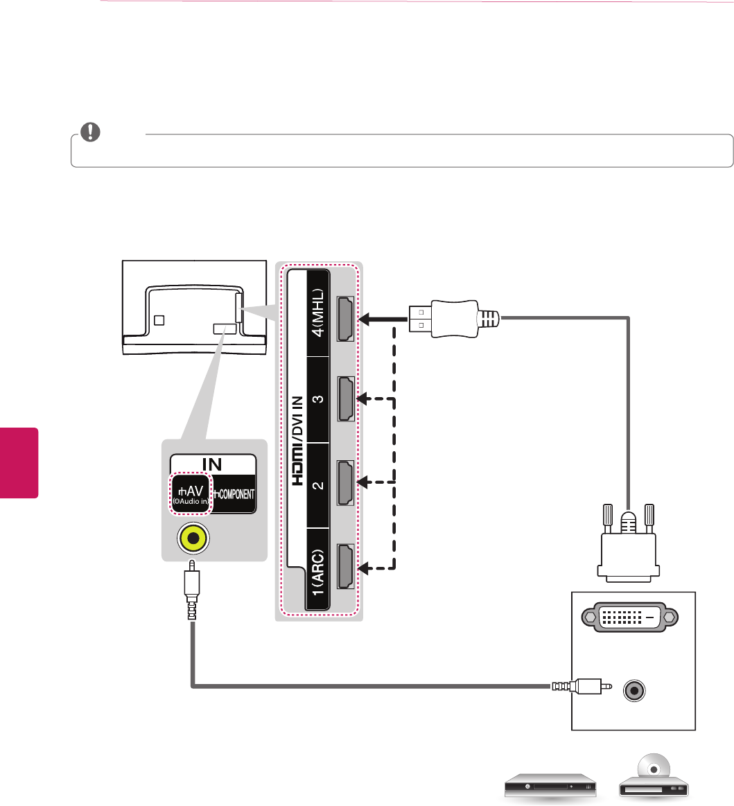 Transmits the digital video signal from an external device to the TV. Connect the external device and the TV with the DVI-HDMI cable