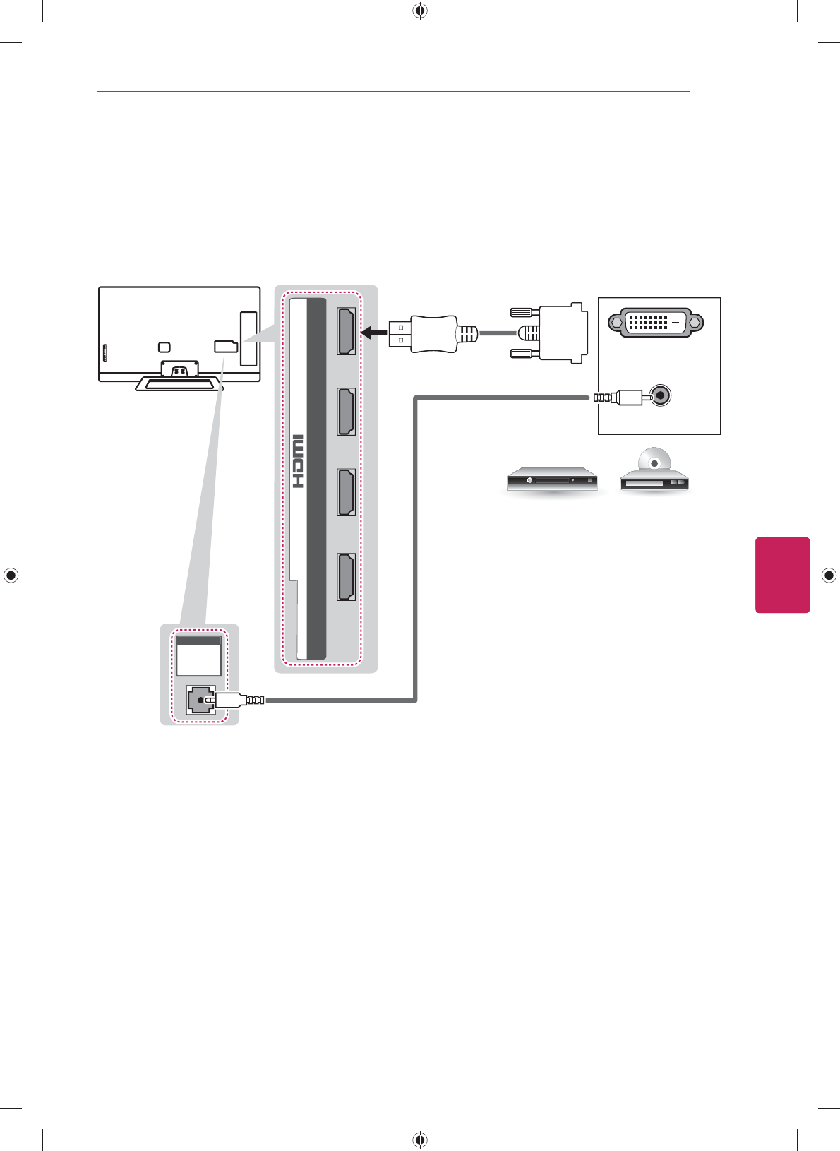 22 Connecting to a HD receiver, DVD, or VCR