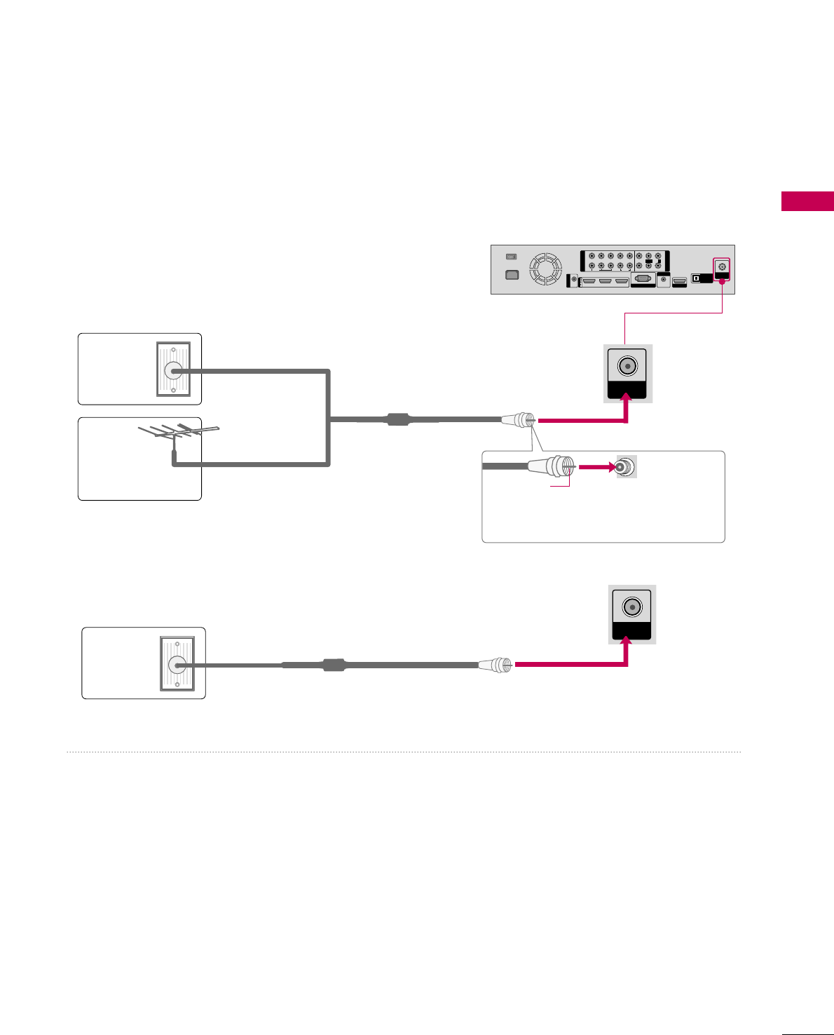 ■If the antenna needs to be split for two TV’s, install a 2-Way Signal Splitter.