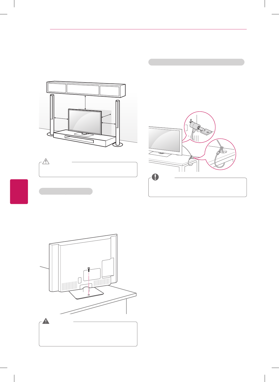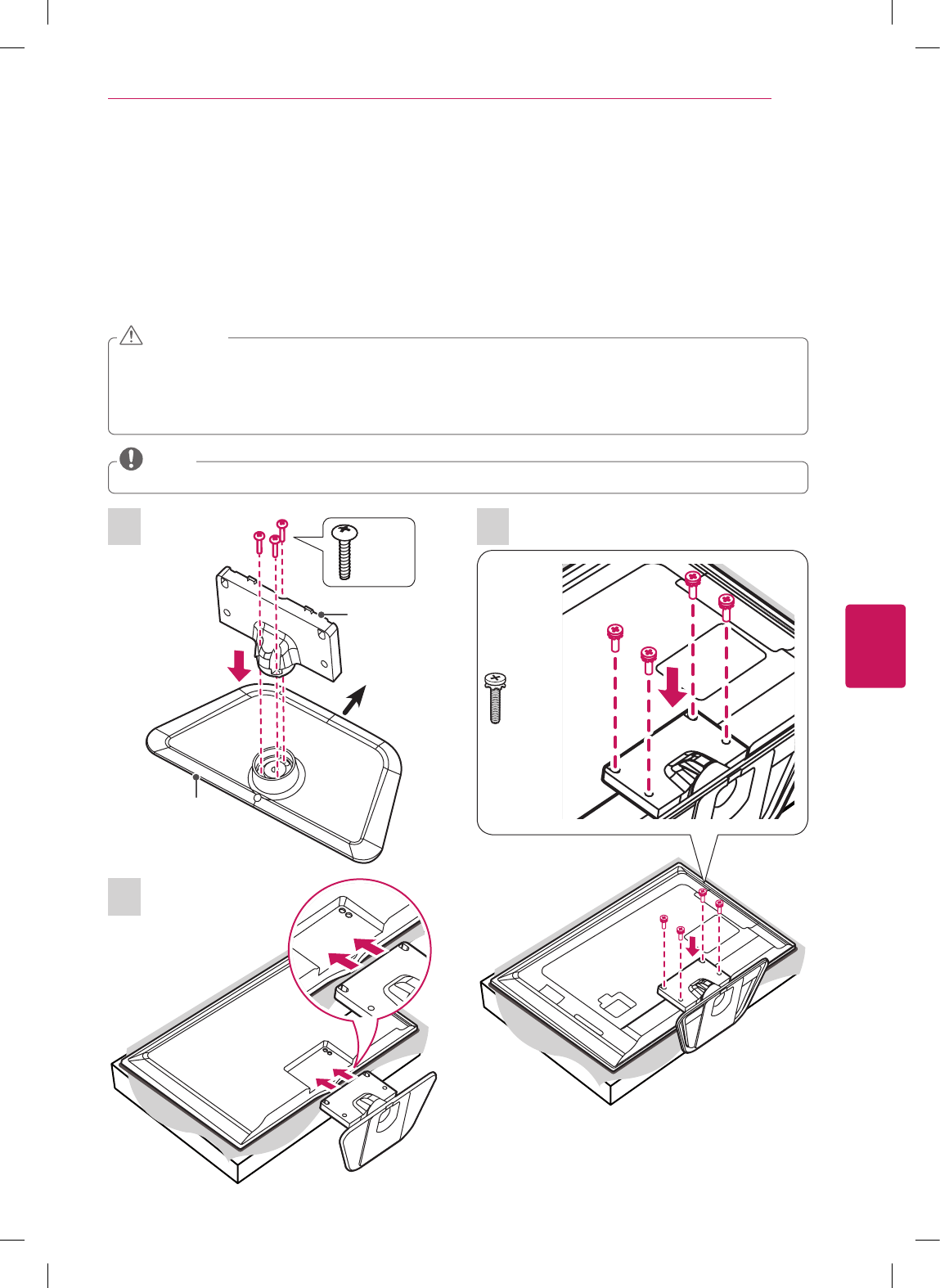 Make sure that the screws are fastened tightly. (If they are not fastened securely enough, the TV may tilt forward