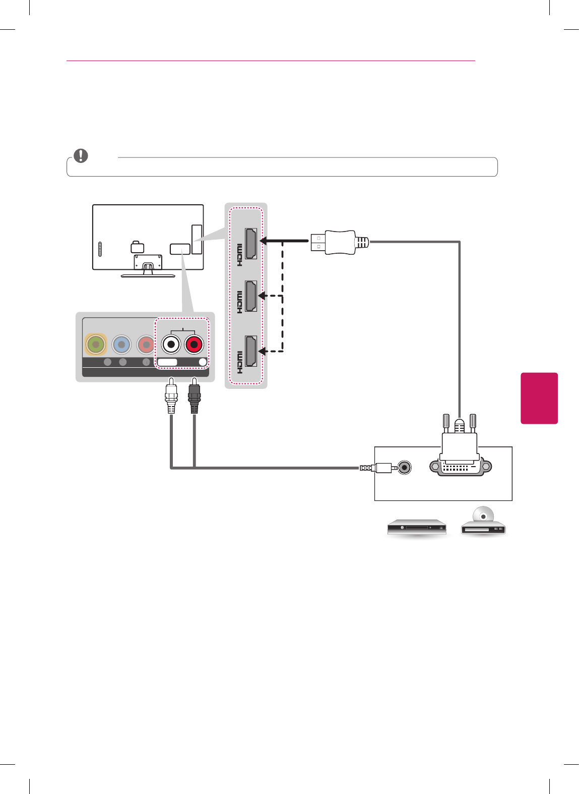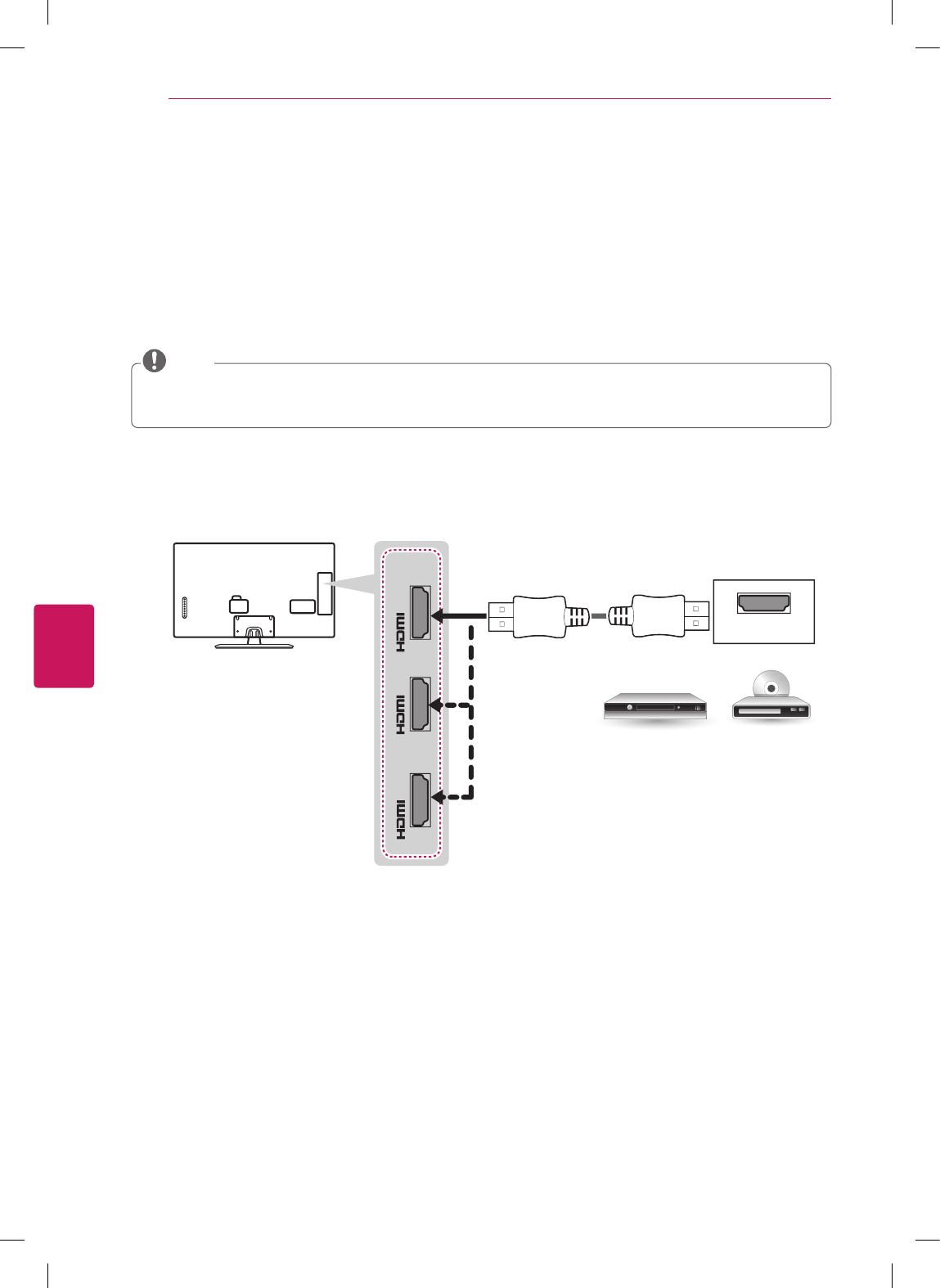 Transmits the digital video and audio signals from an external device to the TV. Connect the external device and the TV