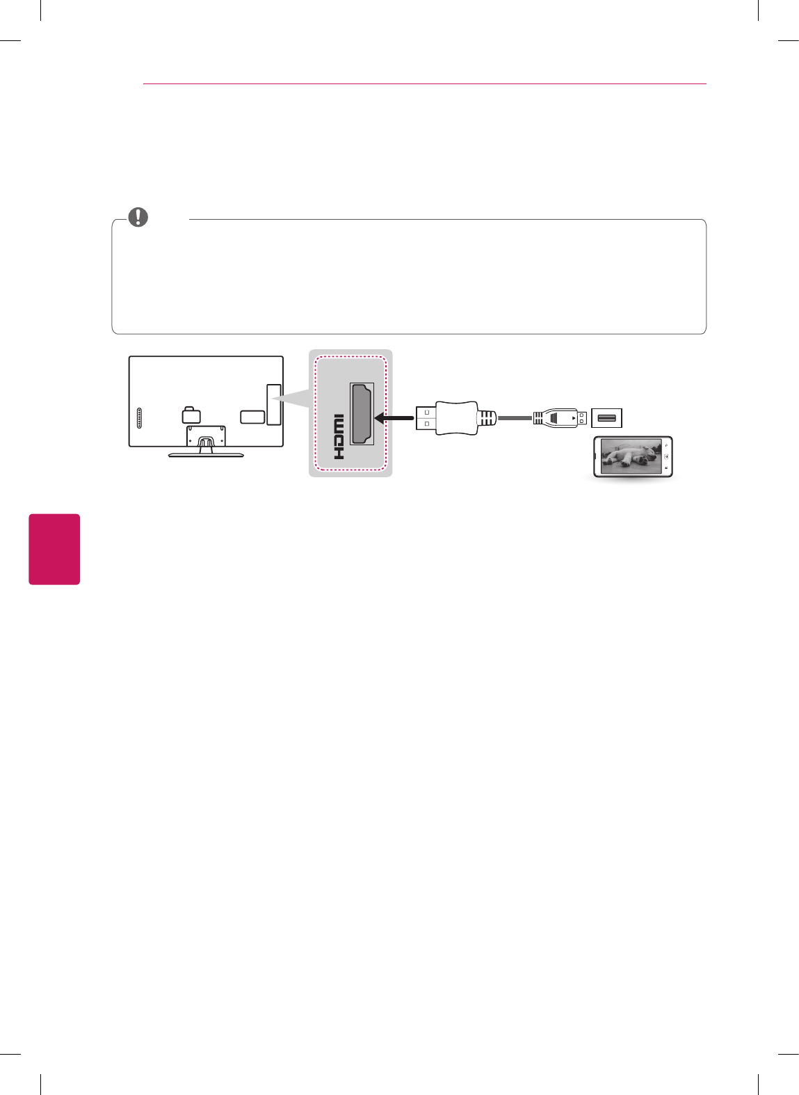 An MHL passive cable is needed to connect the TV and a mobile phone.