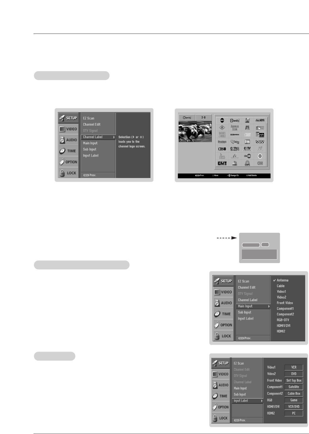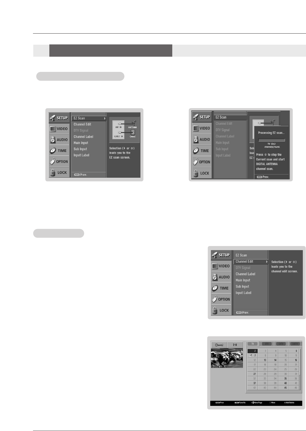 VHF 2 ~ 13, UHF 14 ~ 69, CATV 1 ~ 135, CADTV 1 ~ 135. DTV 2 ~ 69