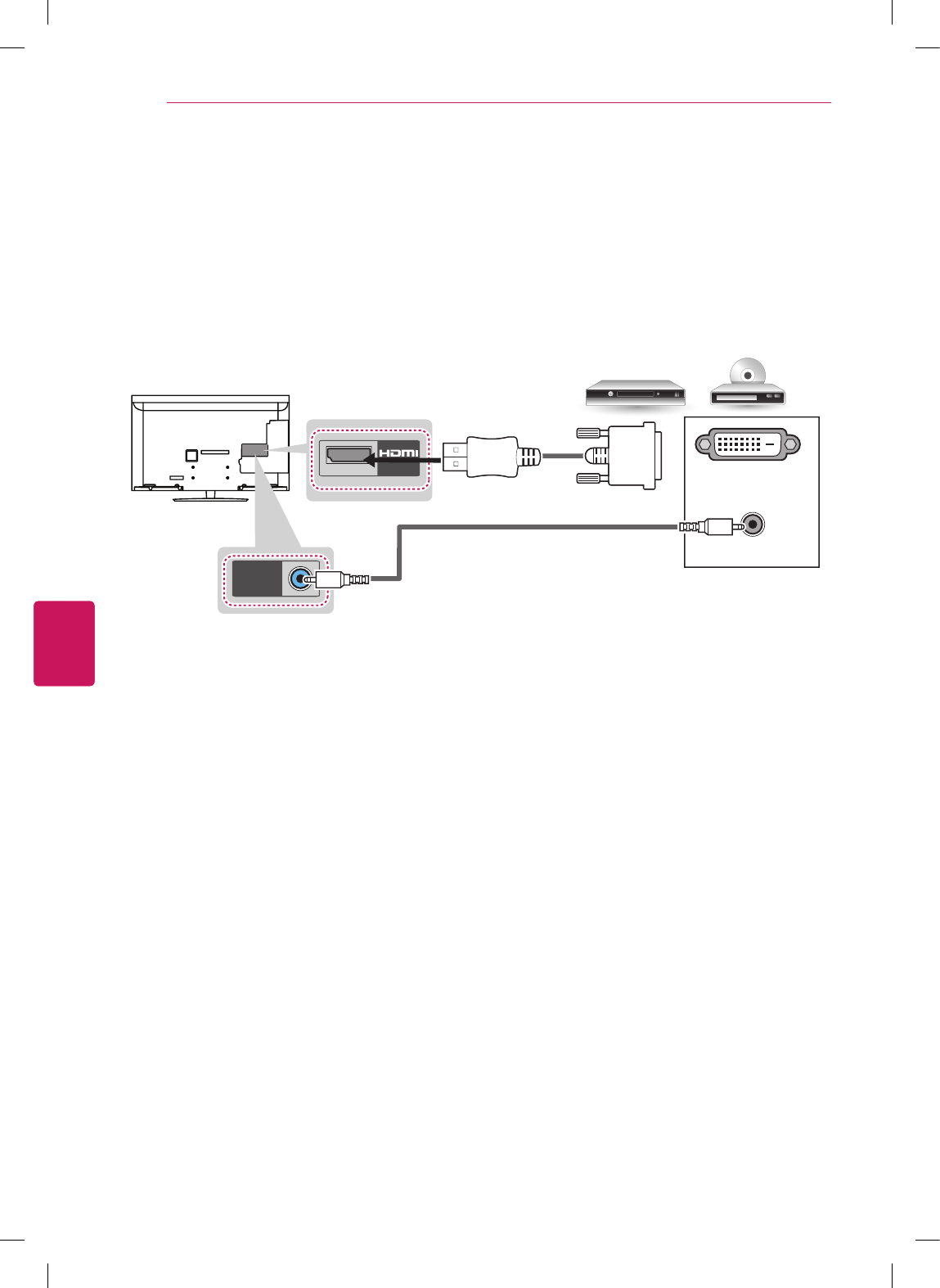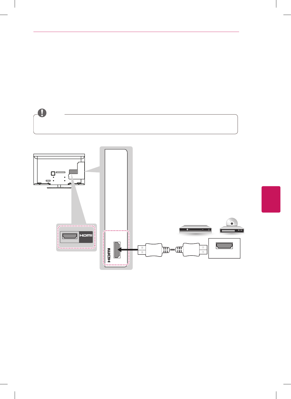 Transmits the digital video signal from an external device to the TV. Connect the external device and the