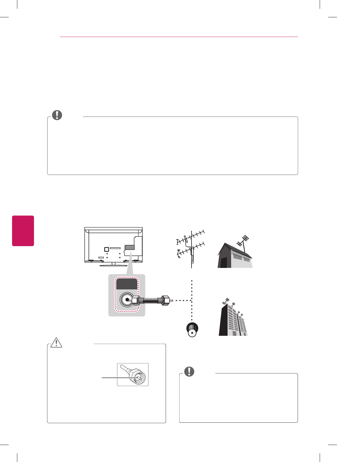 Connect an antenna, cable, or cable box to watch TV while referring to the following. The illustrations may