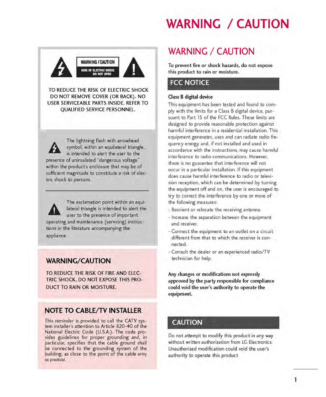 LG Electronics USA PDP TV/Monitor Manual 1 of 3