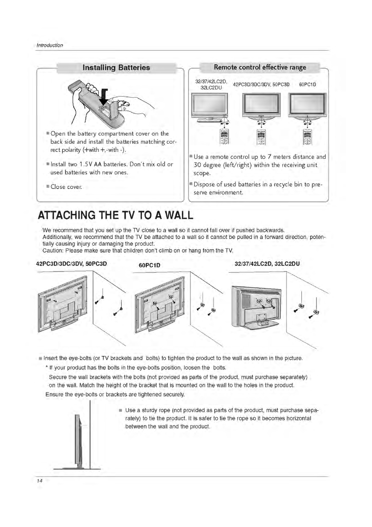LG Electronics USA 60PC1DYUE Plasma Monitor User Manual Manual 1 of 2