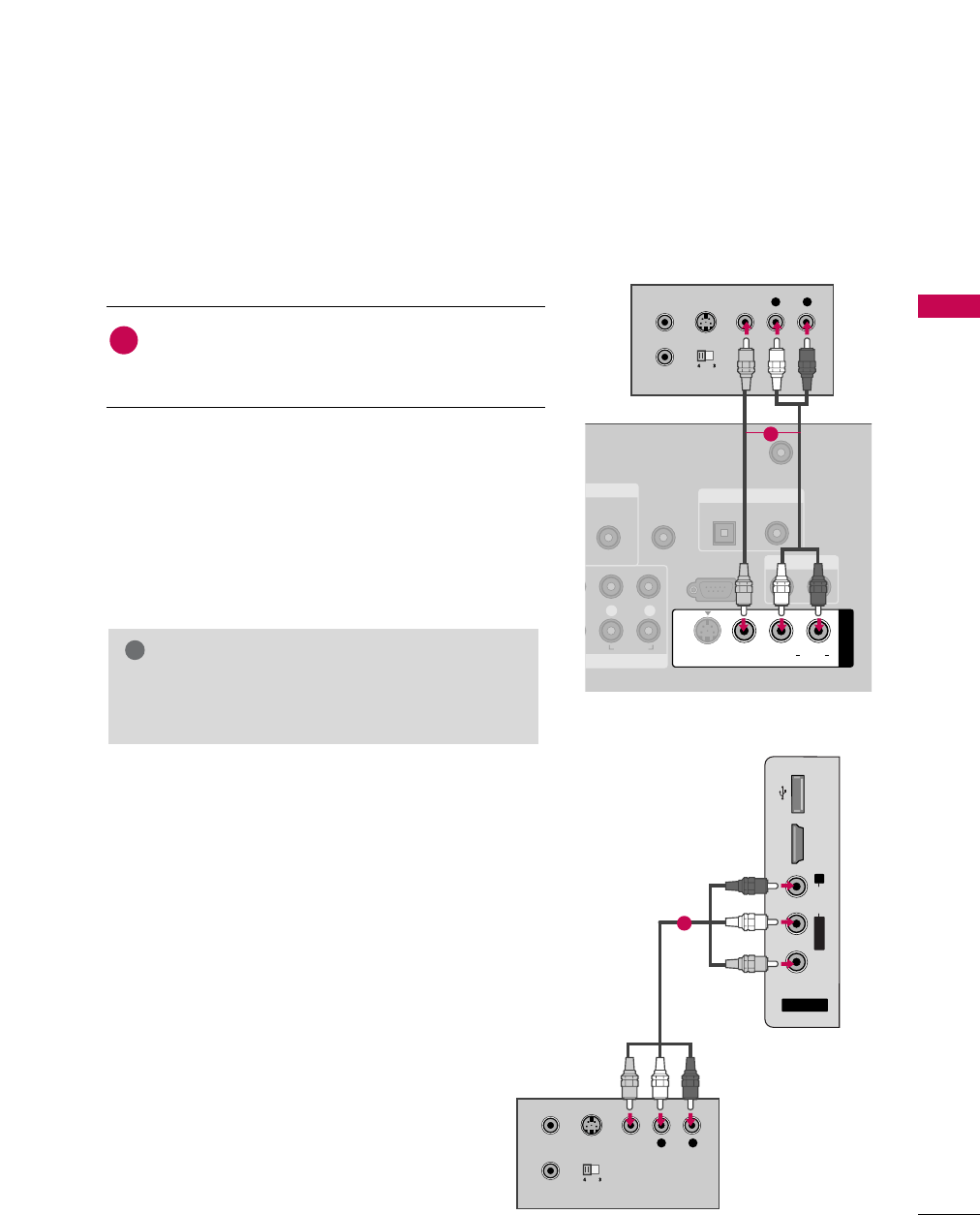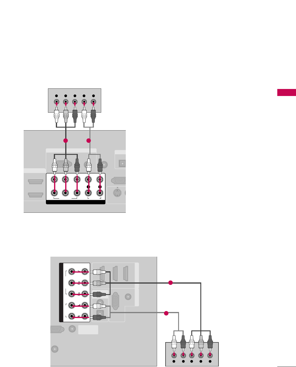 Connect audio outputs to the TV’s AUDIO OOUT jacks.