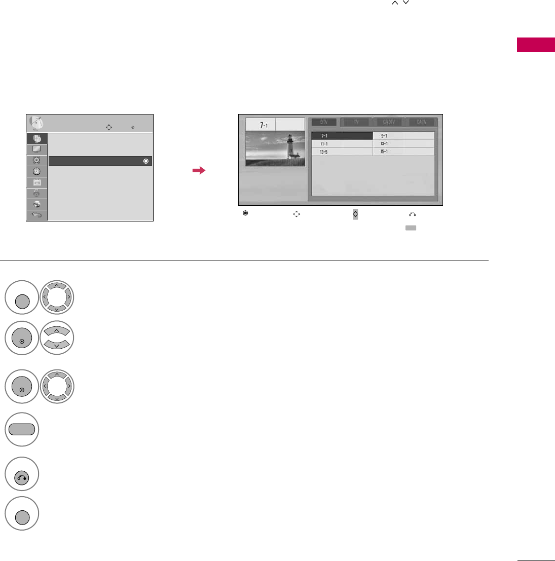 If you wish to select the deleted channel, directly enter the channel number with the NUMBER buttons or select