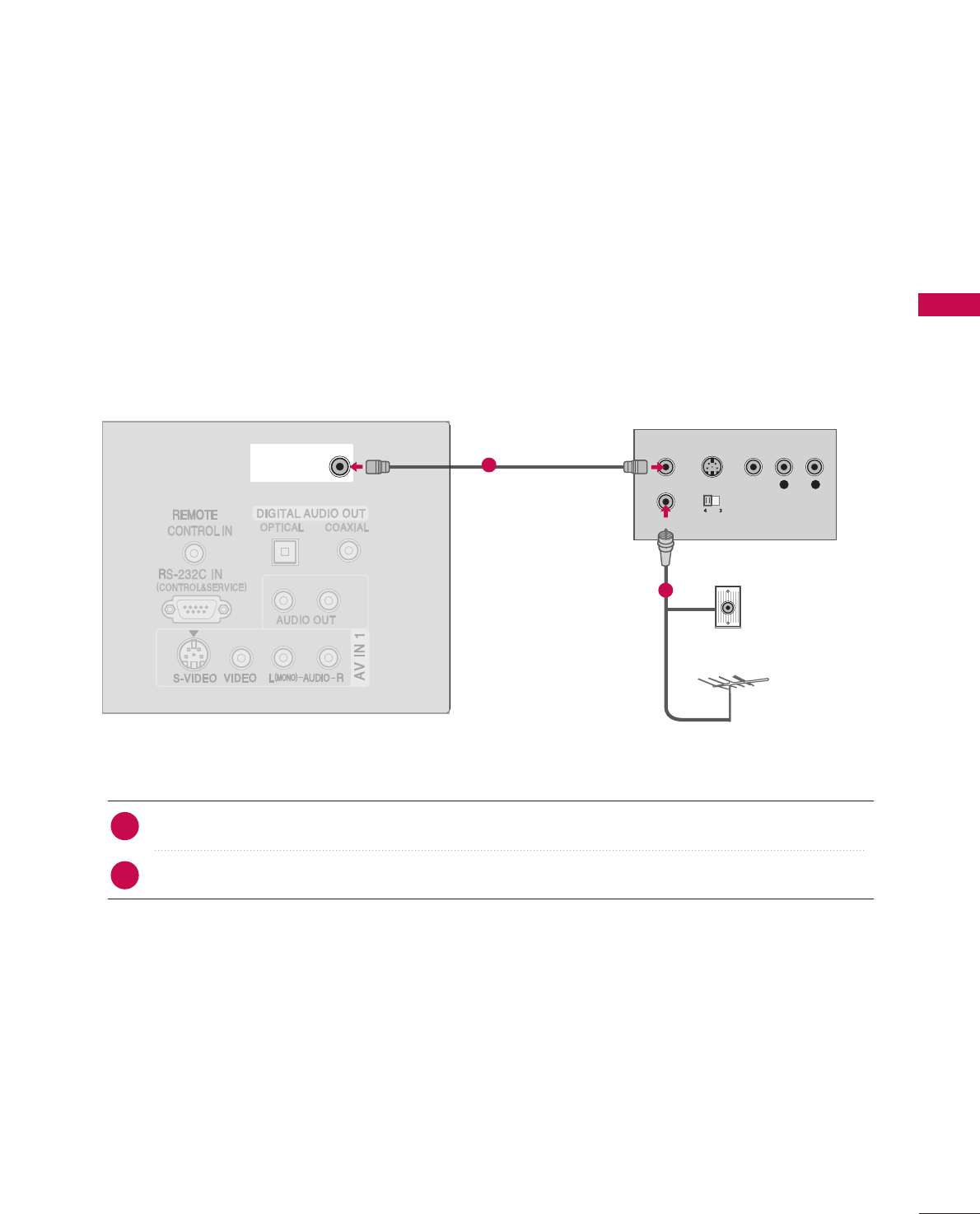 Connect the RF antenna out socket of the VCR to the AAnntteennnnaasocket on the set.