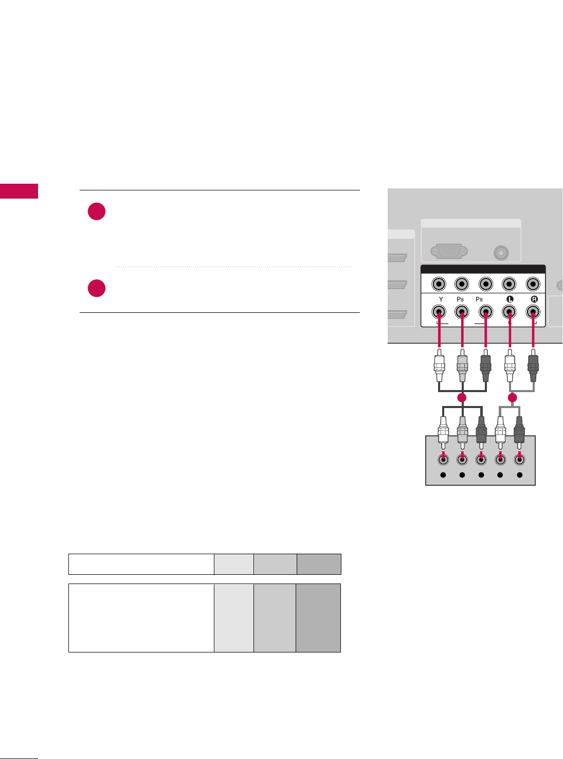 To get better picture quality, connect a DVD player to the component input ports as shown below.