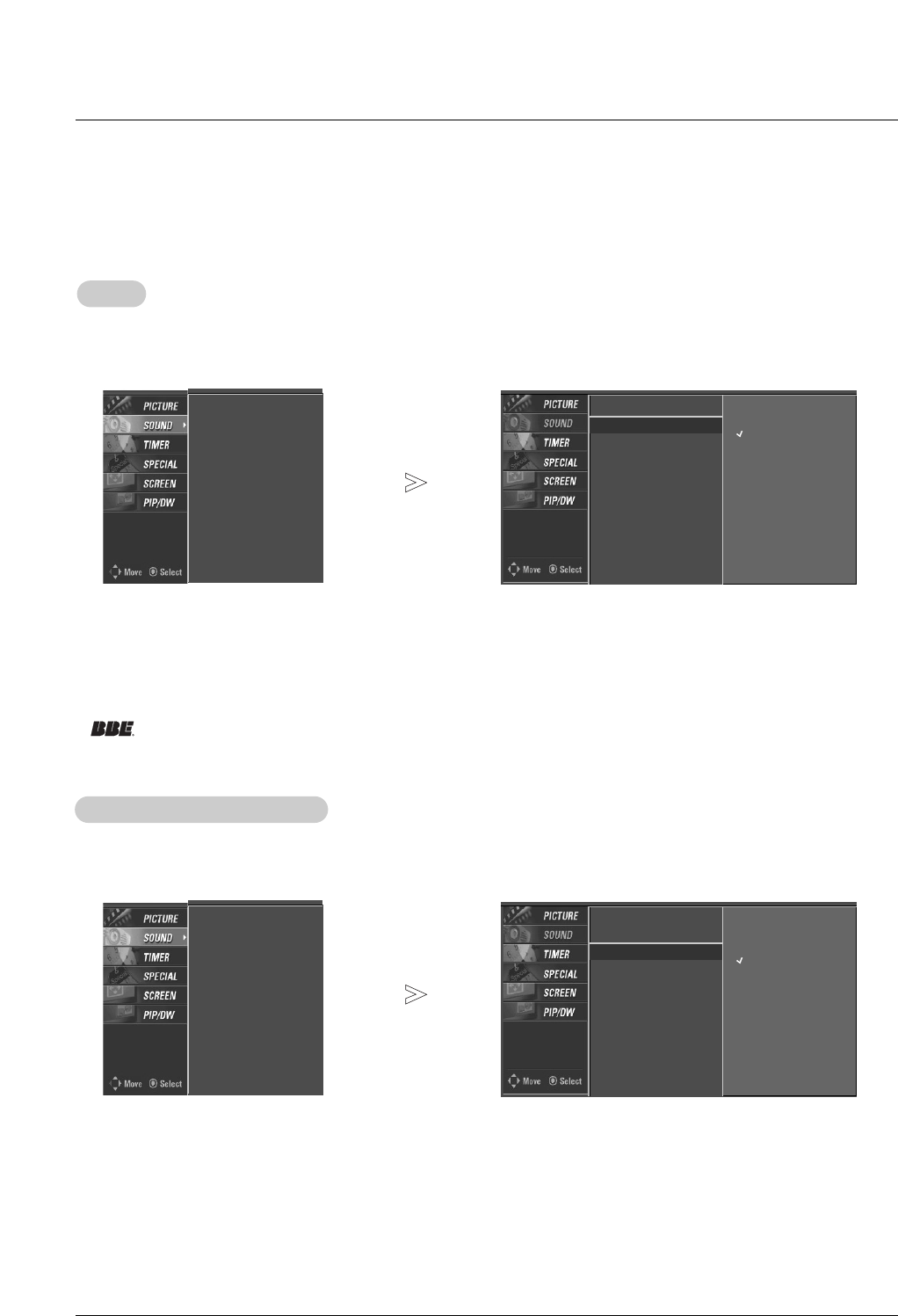 the speakers •Adjust Balance in the Sound menu. (Refer to p.21)