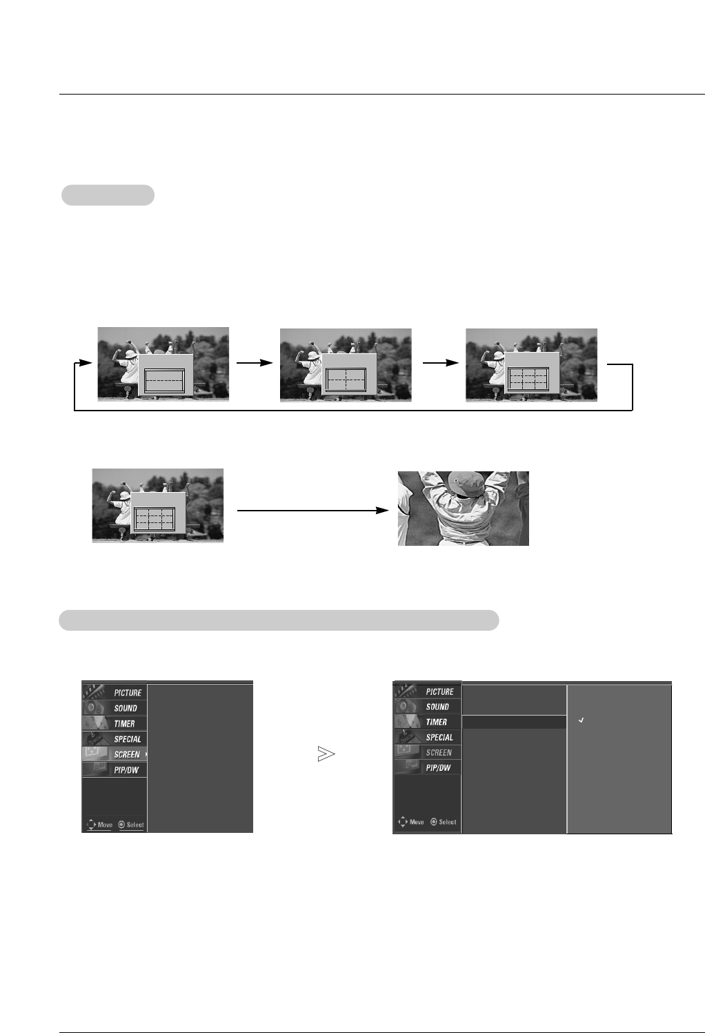 (If still picture is on the screen for more than 5 minutes, the screen gets dark.)