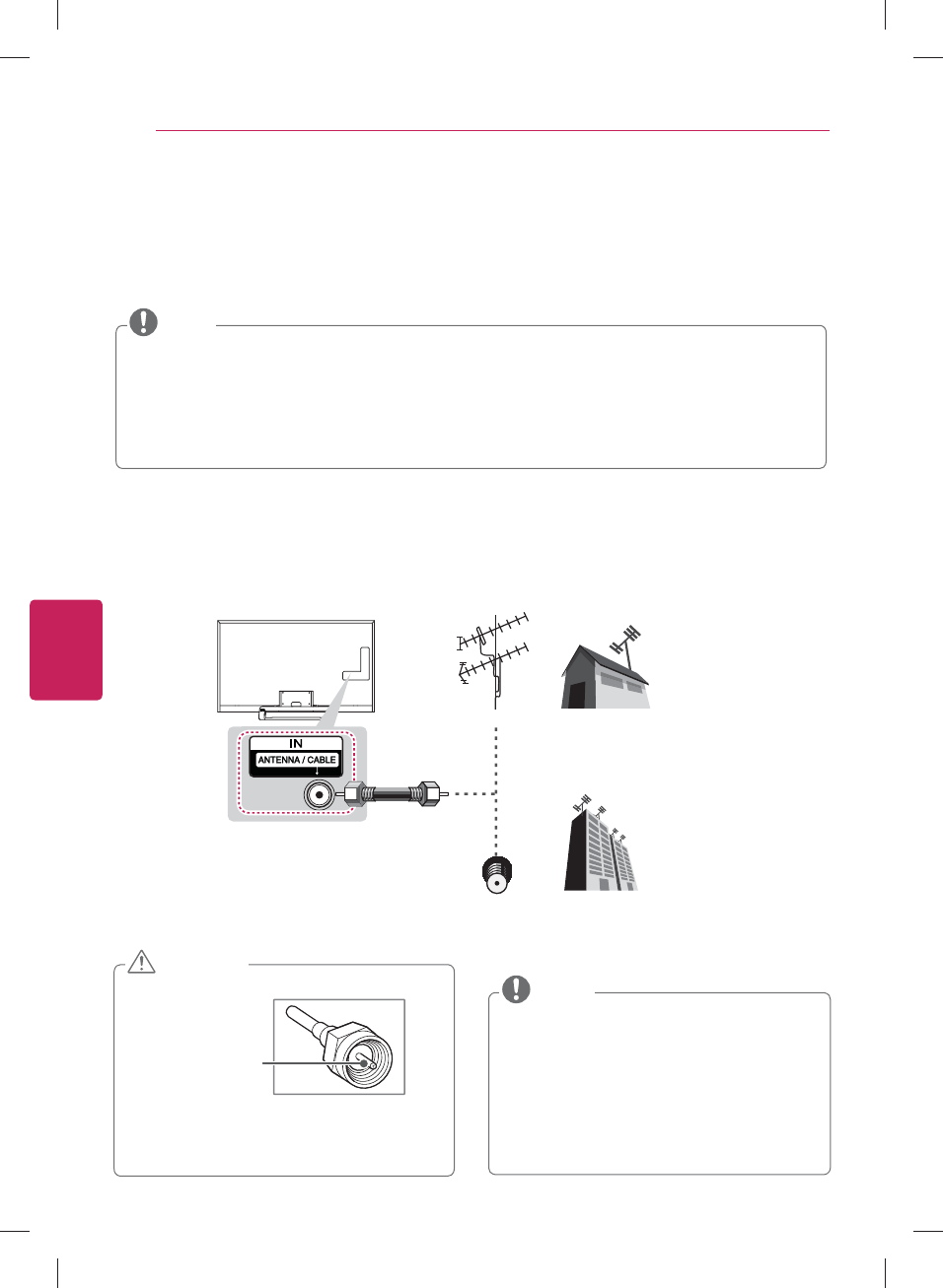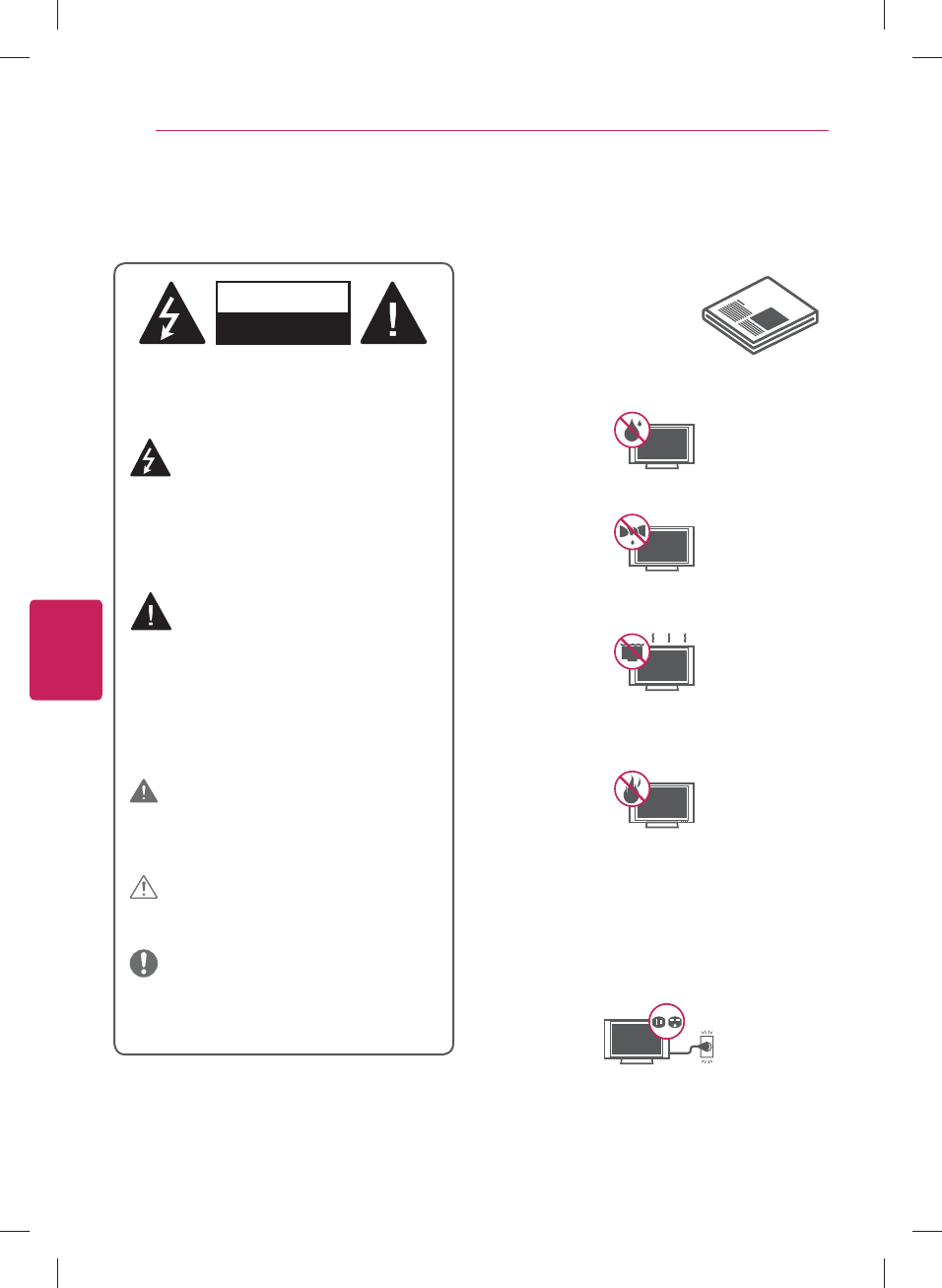 y When the TV is left unattended or unused for a long time, disconnect the power cord from the