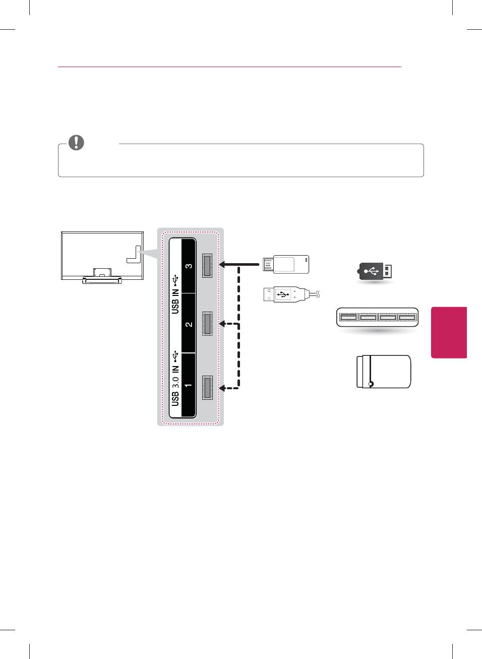 y Do not spray liquid onto the surface. If water enters the TV, it may result in fire, electric shock,