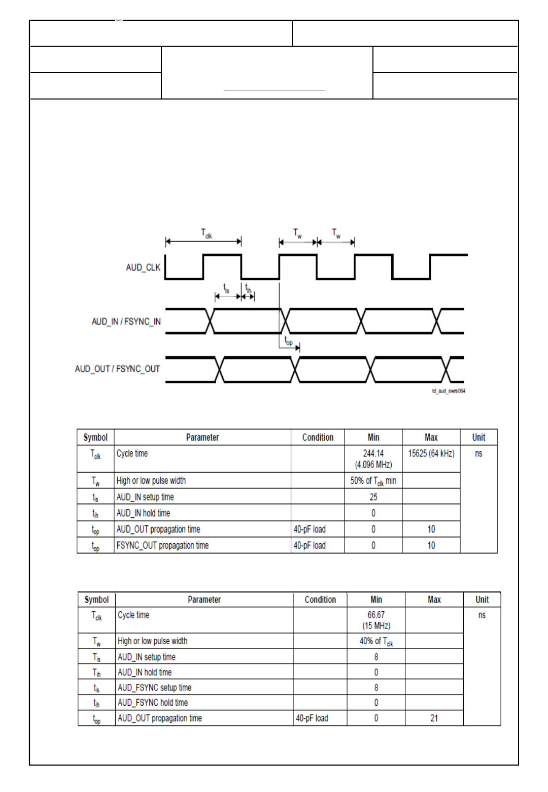 Figure 11-3 shows the interface timing for the PCM. Table 11-3 and Table 11-4