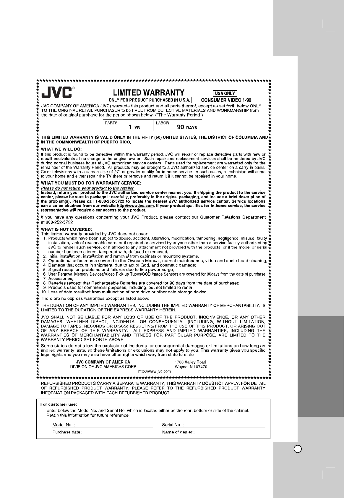ARRANTY (Only in U.S.A.)
