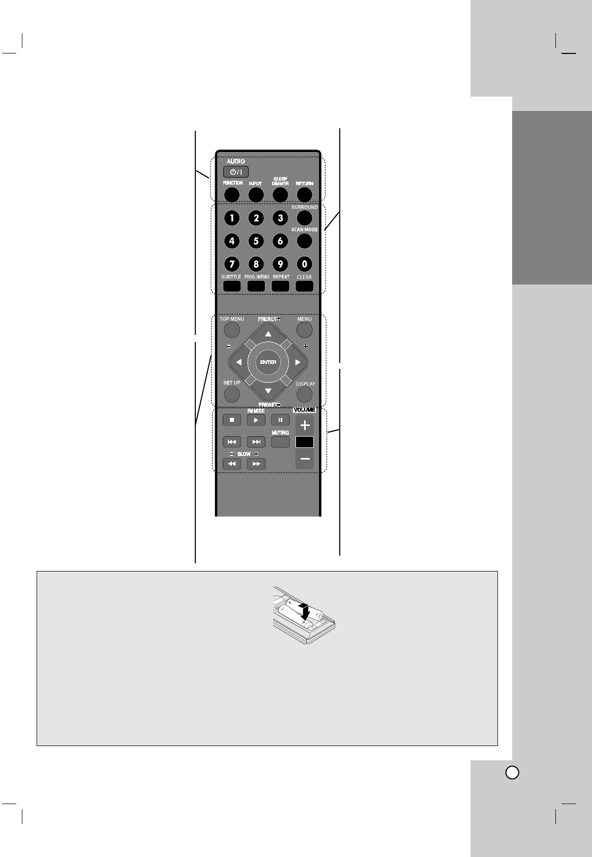 •The batteries in the remote control are