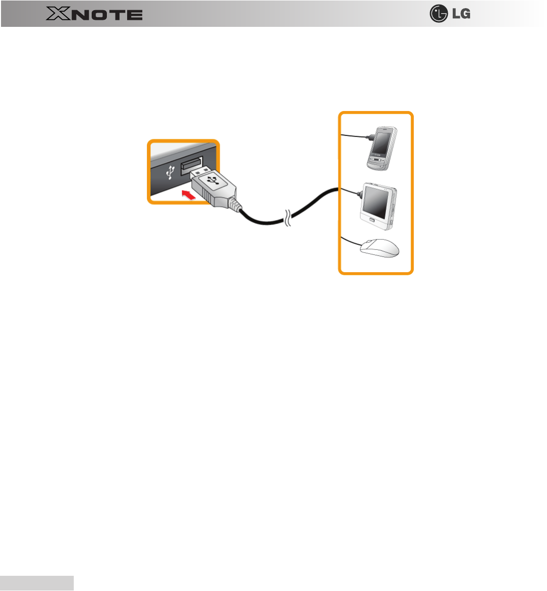 The notebook PC can be connected with other USB supporting devices such as USB keyboard, Hub, digital camera, etc.