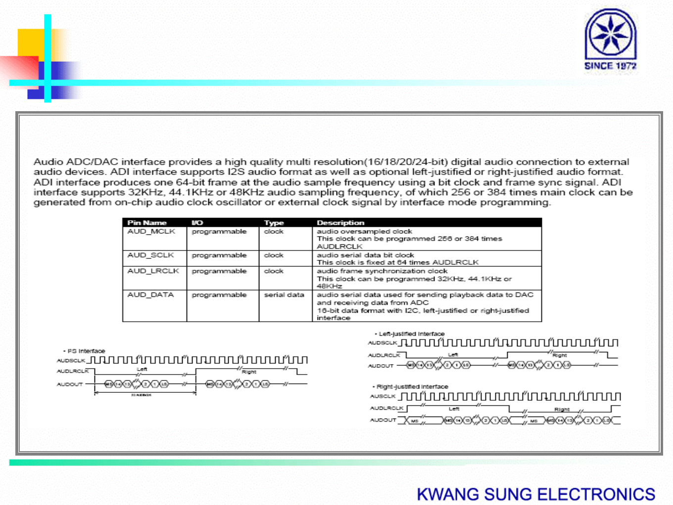 tem clock to the external ADC. Audio clock: SYS_CLK: 12.288MHz (512Fs), BCK: 3.072MHz, LRCK: 48