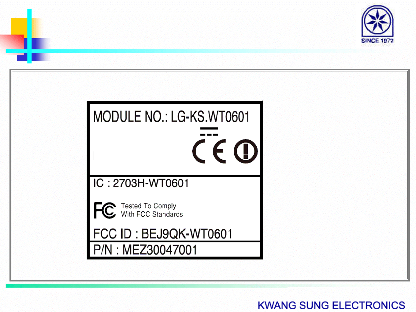LG Electronics USA 9QK-WT0601 Audio Data Transceiver RF Module User Manual Module