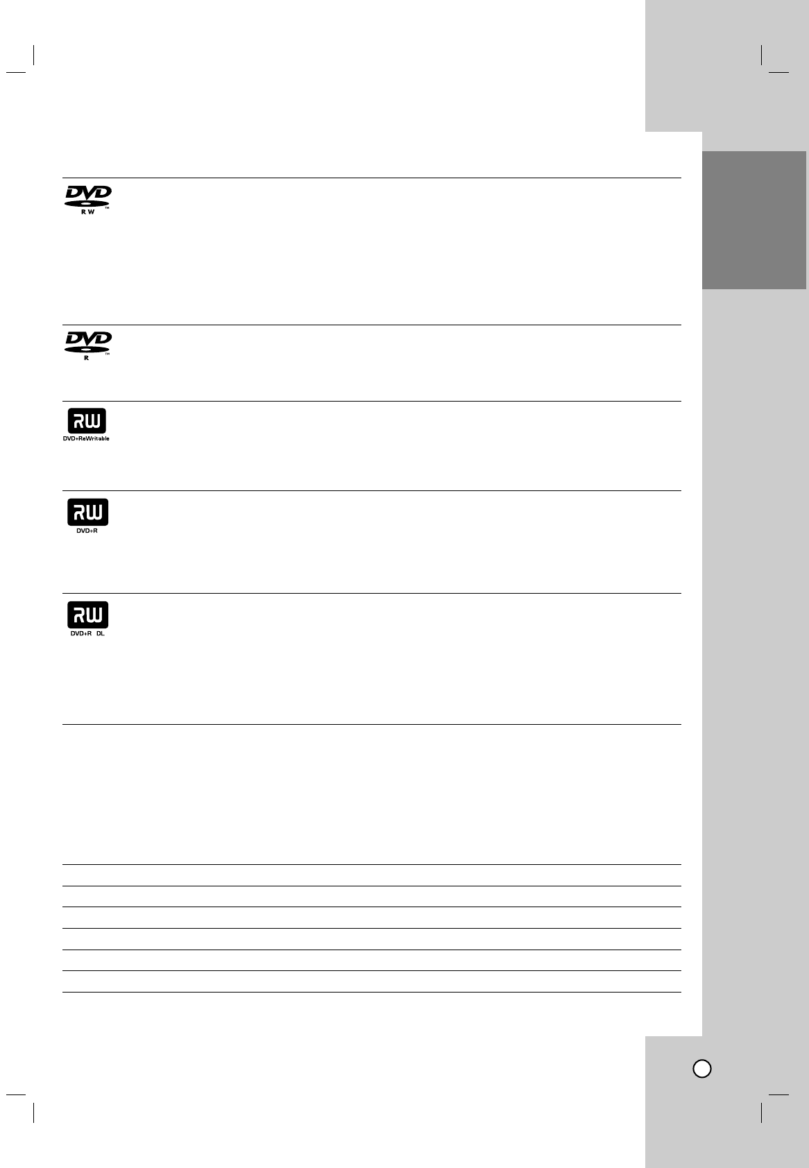 Recordable discs DVD-ReWritable, DVD-Recordable, DVD+ReWritable,