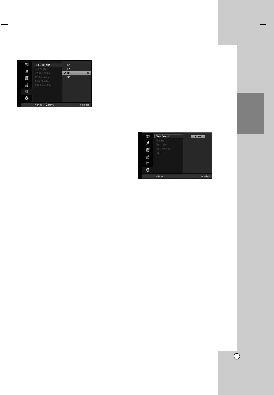 Recordable time DVD (4.7GB): Approx. 1 hour (XP mode), 2 hours (SP mode),