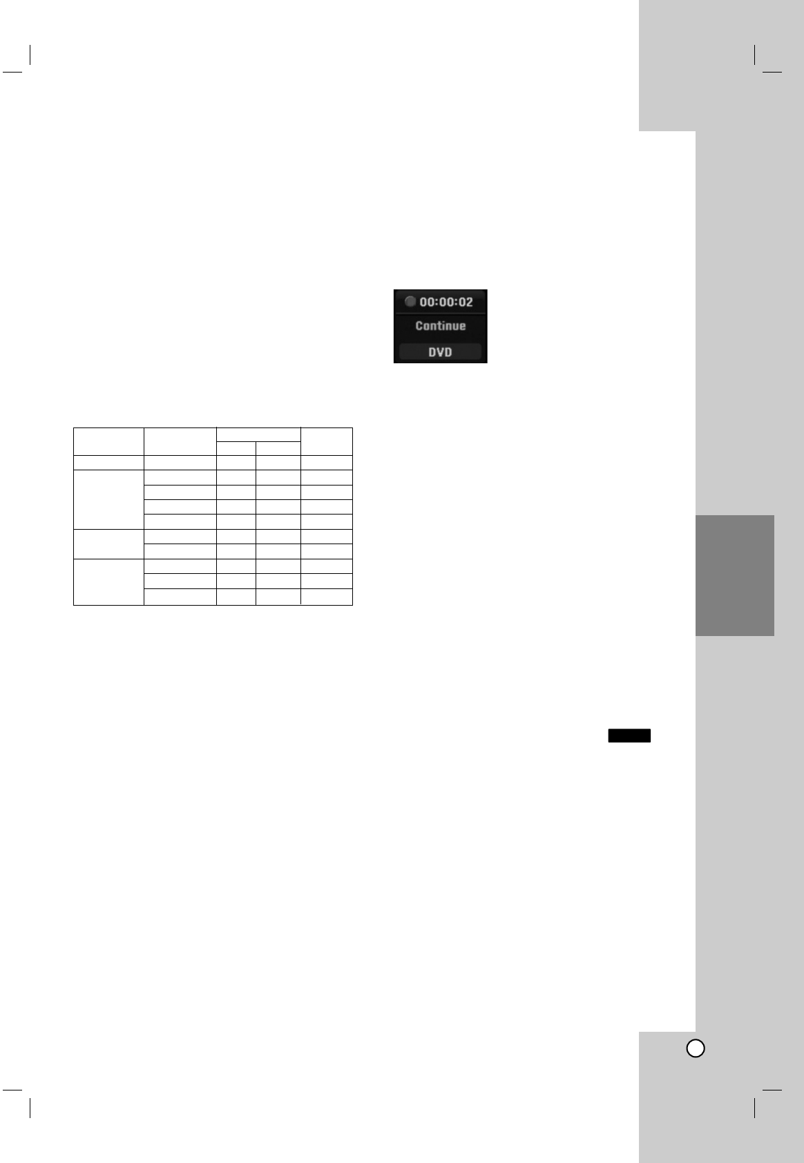 Recordable time DVD (4.7GB): Approx. 1 hour (XP mode), 2 hours (SP mode),