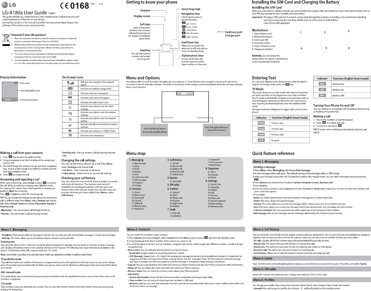 LG Electronics USA A180A Cellular/PCS GSM Phone User Manual