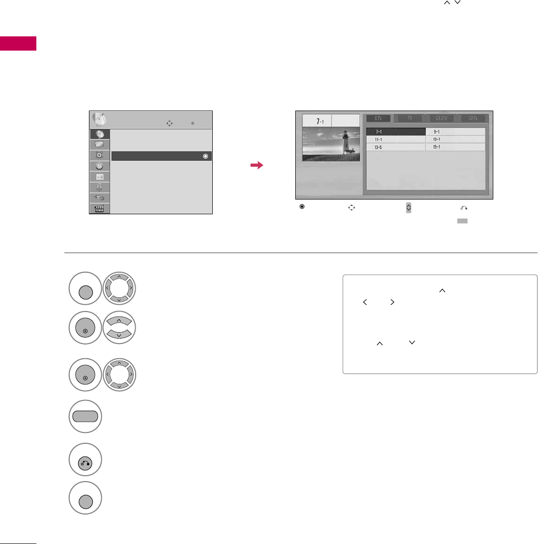 Press the CH ( or )or NUMBER buttons to select a channel number.