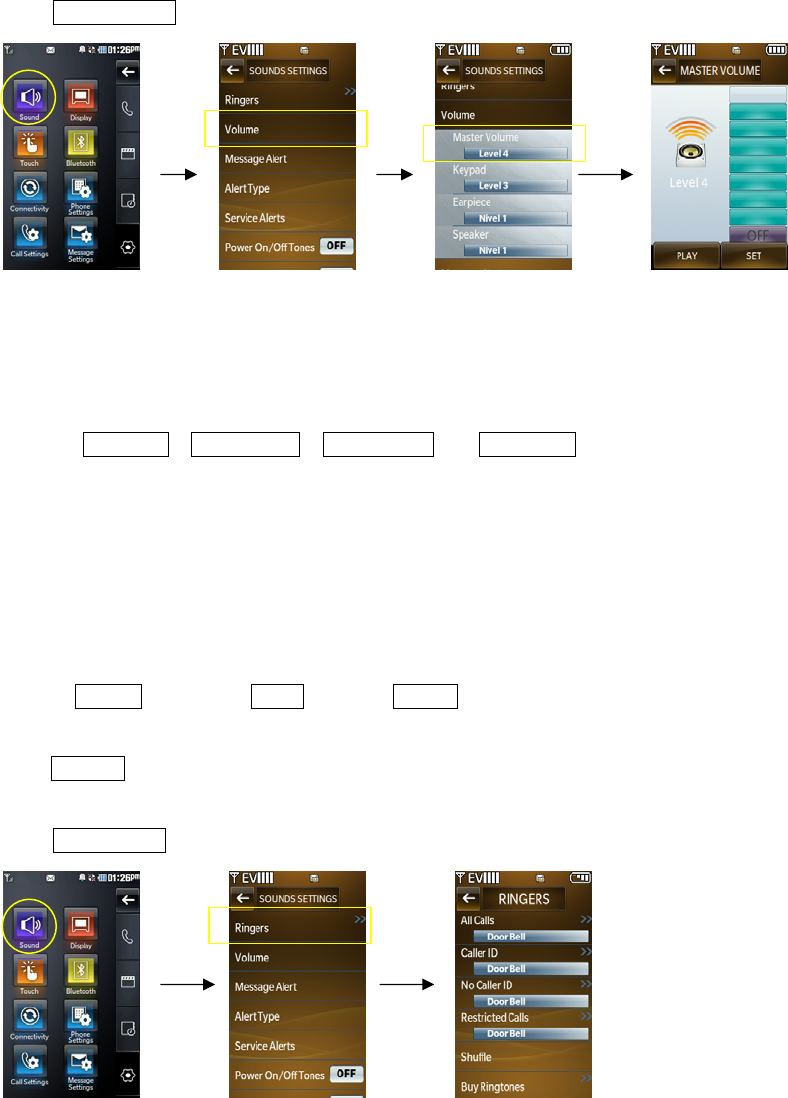 3. Highlight Level 1~5 , Vibrate Only , Alarm Only and Sounds Off (for Ringer only) and press