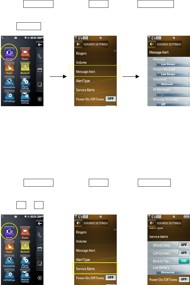 1. From the SETTINGS. menu, touch Sound and select Service Alert