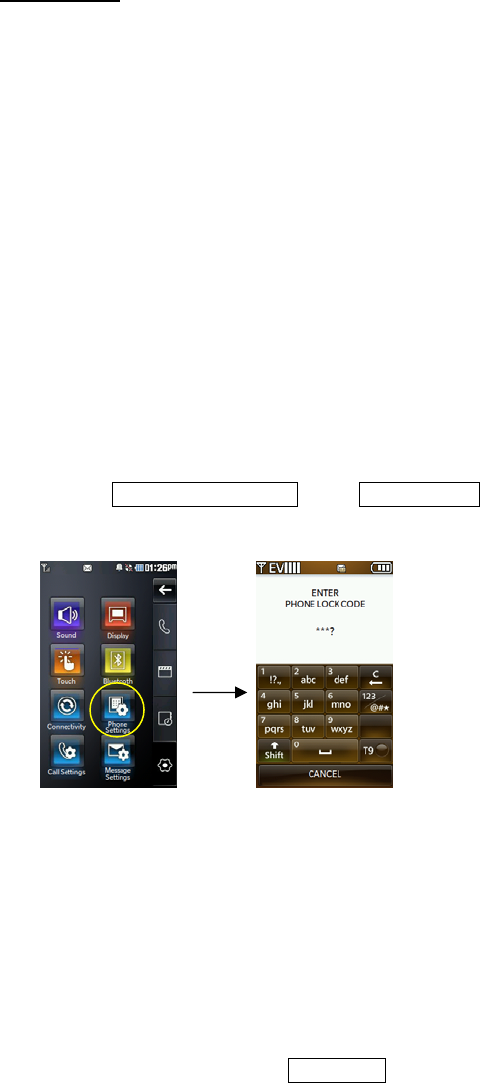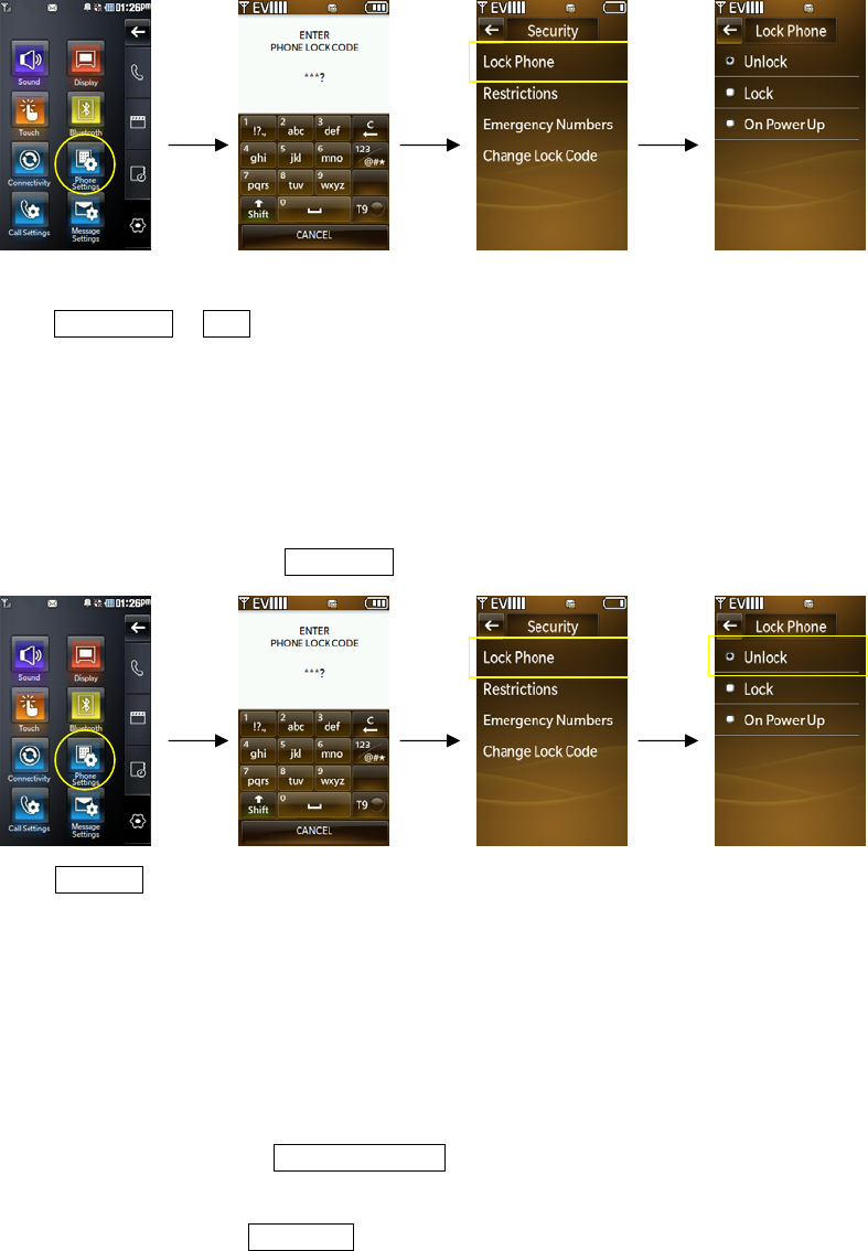 2. Touch On Power up or Lock. If you select On Power Up, the phone will be locked each time it power