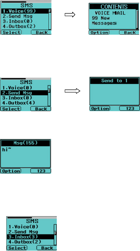 - Voice : Menu to check the number of voice messages in the voice mailbox