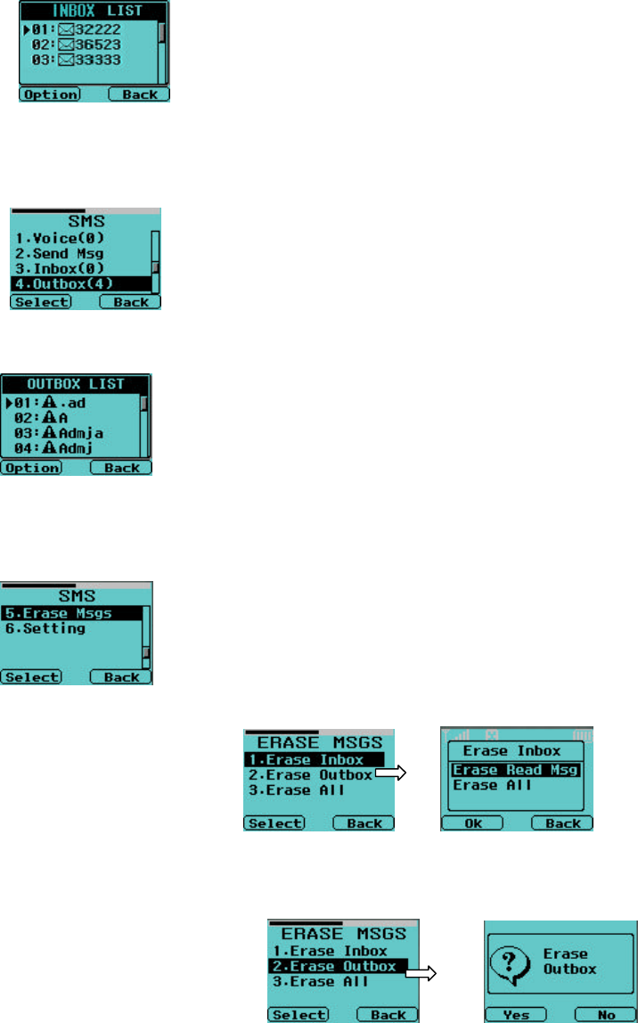 - select ‘Erase All’ -> delete all messages(old and new) sotred in Inbox.