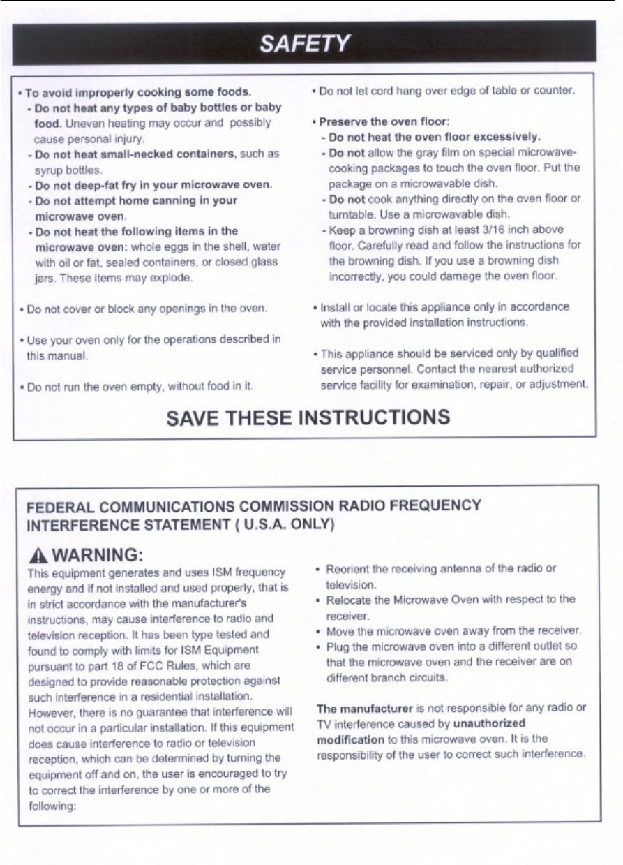 A. DO NOT attempt to operate this oven with the door open since open door operation can result in harmful